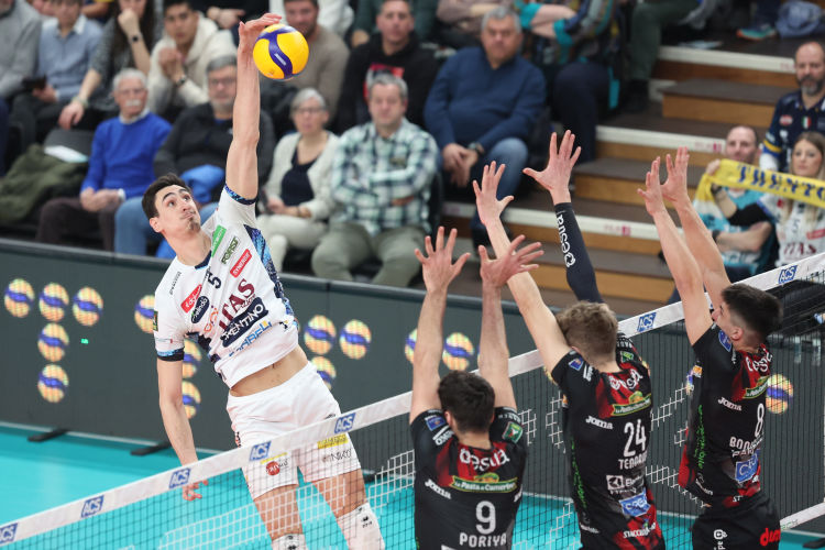 The team from the Marche region tries to respond at the start of the second set (3-6 and 6-9), taking advantage of a slow start by Trento, who suffers in reception and makes too many serving errors. Soli stops the game but has to wait for Flavio’s block at 9-11 to see the first real reaction from his team; an error by Nikolov brings the teams into close contact again (12-13), and they fight point by point for a long time (15-16) before an out attack by Poriya levels the score at 18. Itas Trentino takes the lead with a fortunate ace by Rychlicki, helped by the net for 21-20, but Lube doesn’t give up and with Poriya takes the lead again (22-23, Soli calls a time-out). In the end, the guests prevail with a break point by Nikolov on the first set ball (23-25).