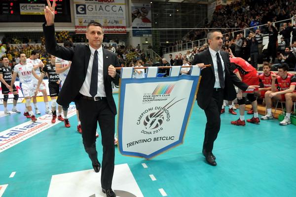 Stoytchev E Serniotti Mostrano Il Gonfalone Dei Campioni Del Mondo