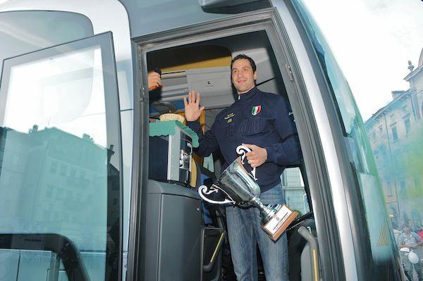 Capitan Kaziyski Scende Dal Pullman Con  La Coppa